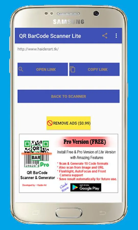 To scan the QR code or Barcode, simply open this application, fit QR / Barcode in camera. QR Bar Code Lite Scanner will automatically recognize any QR and Barcode. If the code contains a URL, you can open a browser by pressing Visit Link button. If the code contains only text or digits, you can see it only.