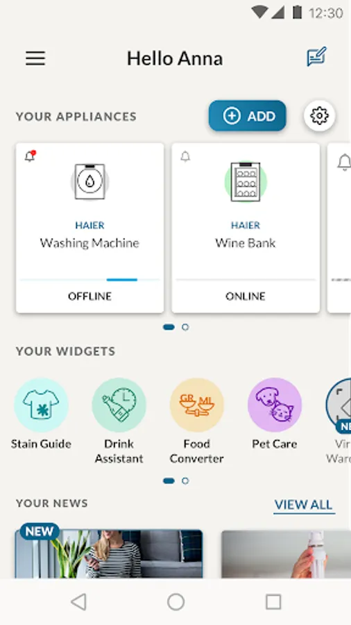 Revolutionise your home management thanks to Smart Widgets, available to all hOn users; use the Recipe Book to cook professional recipes, the Stain Guide to wash your favourite garments, the Drink Assistant to enjoy your wine at the right temperature and finally, for lovers of four-legged friends, the Pet Care widget will assist you in keeping all activities regarding your pets under control.