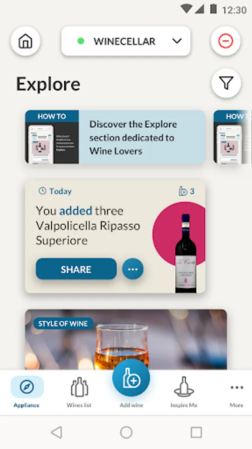 - Catalogue your favourite wine bottles and discover all their secrets by activating the virtual wine cellar. Create your wine list, manage it and be inspired by the suggested pairings.