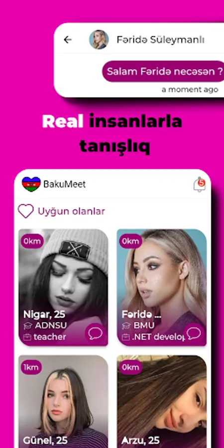 The opportunity to meet people in the city where you live with BakuMeet. Swipe left or right unlimited to meet new people.