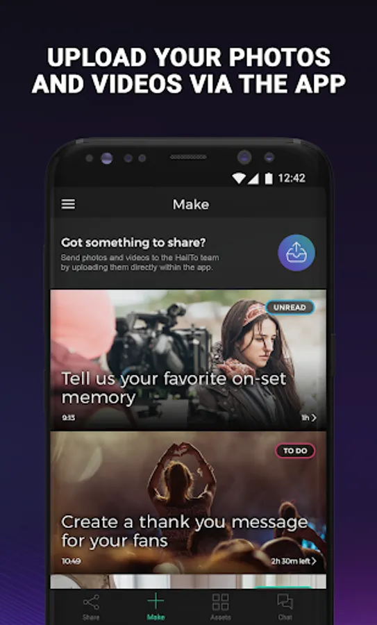 HailTo also empowers talent to create and upload high-value, genuine and personal content with a single request - no longer requiring excessive amounts of time, people and coordination.