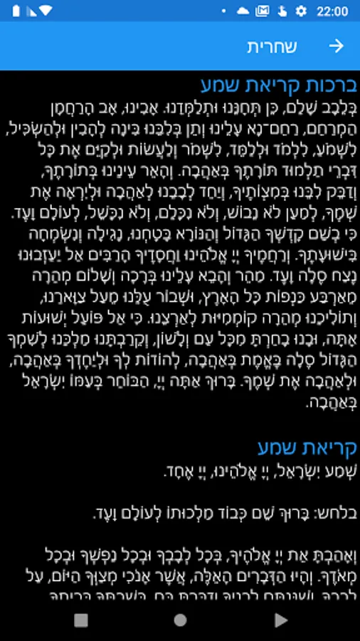 - Prayers in various forms (Ashkenazi, Sephardi, Eastern Testimonies, soon Baladi)