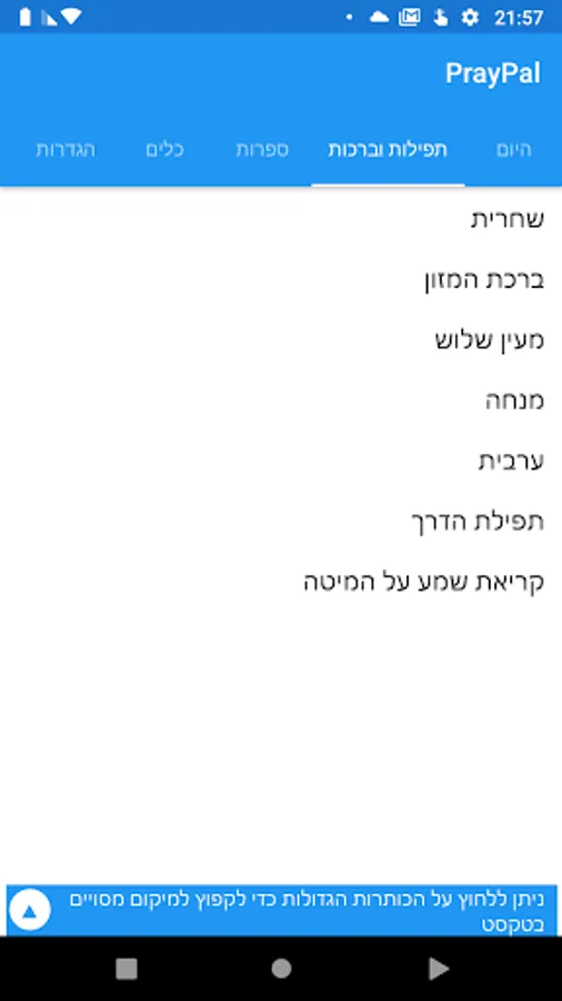 Automatic prayers, books (such as Psalms), a full Hebrew calendar, a prayer compass, day times and many more surprises! And everything is free!