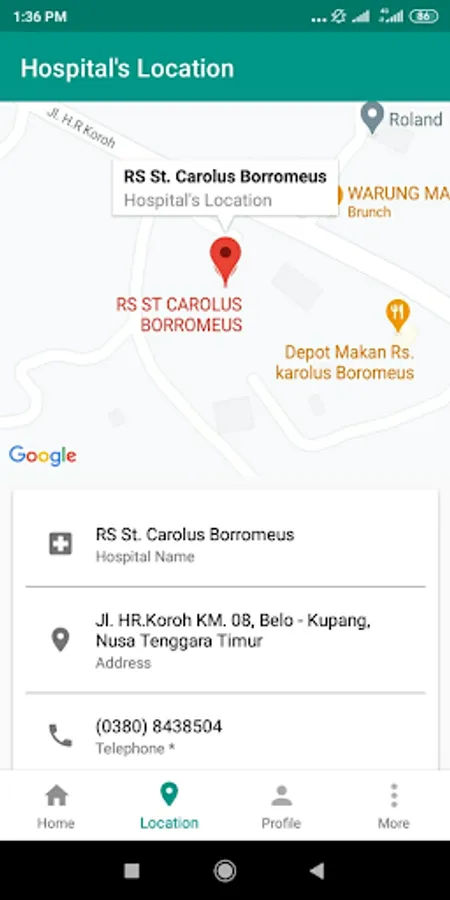 Rumah Sakit St. Carolus Borromeus terletak di Jl. HR.Koroh KM. 08, Belo - Kupang, Nusa Tenggara Timur