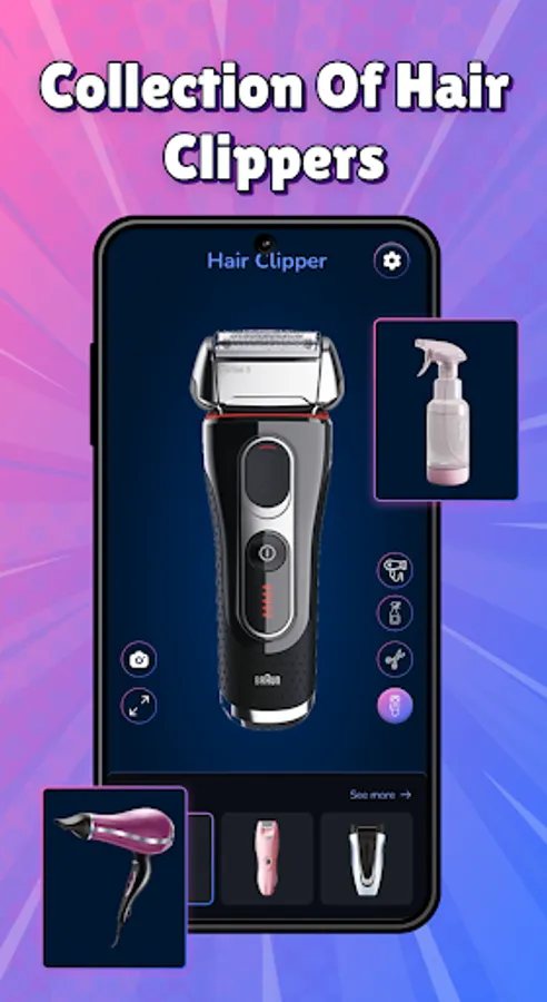 Hair clipper, spray, hair dryer,... All are integrated in Hair Clipper: Prank Sound app with vivid images and sounds. Upgrade your prank.