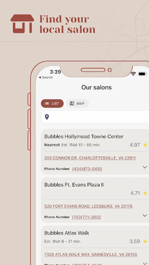 Interactive Salon Map: Locate your nearest Bubbles Salon effortlessly. Discover convenience at your fingertips and visit your preferred location.