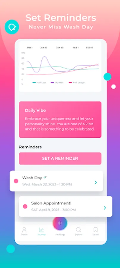 Stay consistent with your hair care and wellness goals with daily reminders, notifications, and motivation.