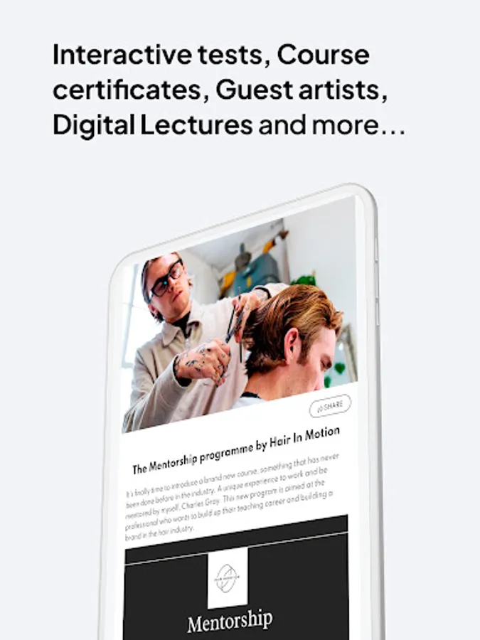 You will be able to learn from exclusive content created by leading industry experts, that will allow you some insight in what the hair industry is all about. Learn and enjoy at your own pace, whenever and wherever you want with interactive tests, Course certificates, Guest artists, Digital Lectures and more.