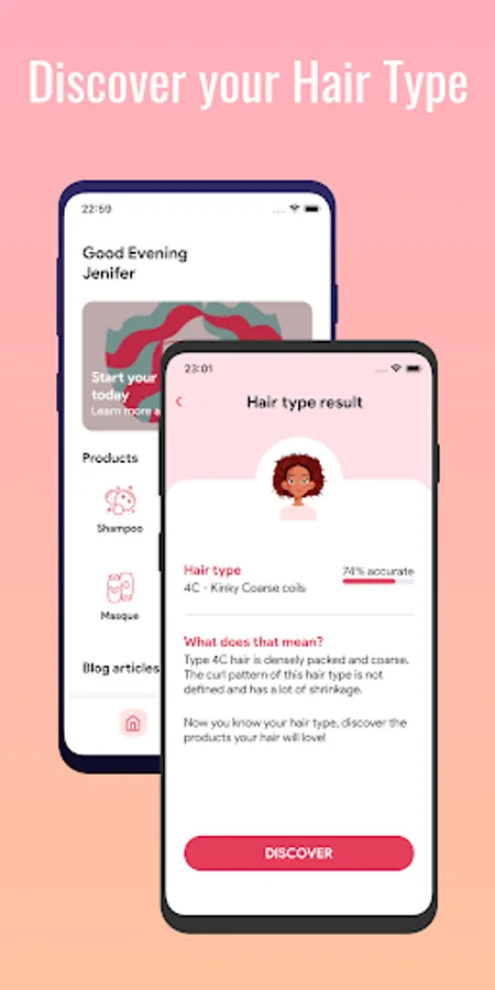 The Hairliker app is simple to use and was designed to help all women have a better understanding of their hair. Our app caters to all hair types. Whether you are straight, wavy, curly, or coily, you are in the right place.