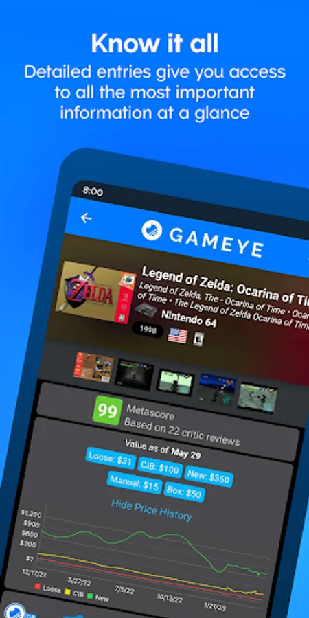 Elevate your game collecting experience with GAMEYE! Seamlessly track games, systems, accessories, guides, and amiibo—all in one place. Uncover the worth of your collection and make savvy deals with confidence.