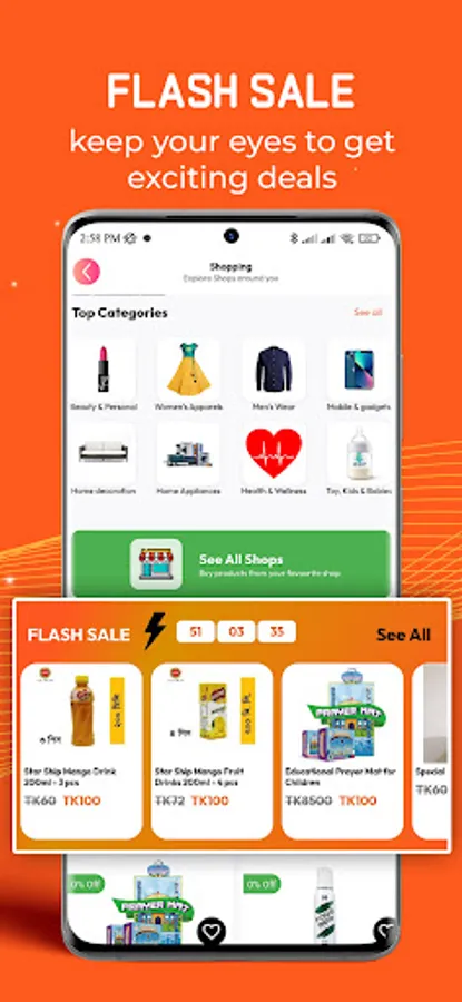 If you are looking for buy and sell online business apps or dress online shopping app Bangladesh that has easy and user-friendly interface, then this bd shopping online is your best choice. You don’t have to go through any settings to buy products online. Just install this online shop Bangladesh from the store, open an account within minutes using mobile number and start buying stuff with one tap. This app brings you everything from beauty products or fashion stores sorted into categories. You can just scroll through the category and search for the desired products in the search bar.