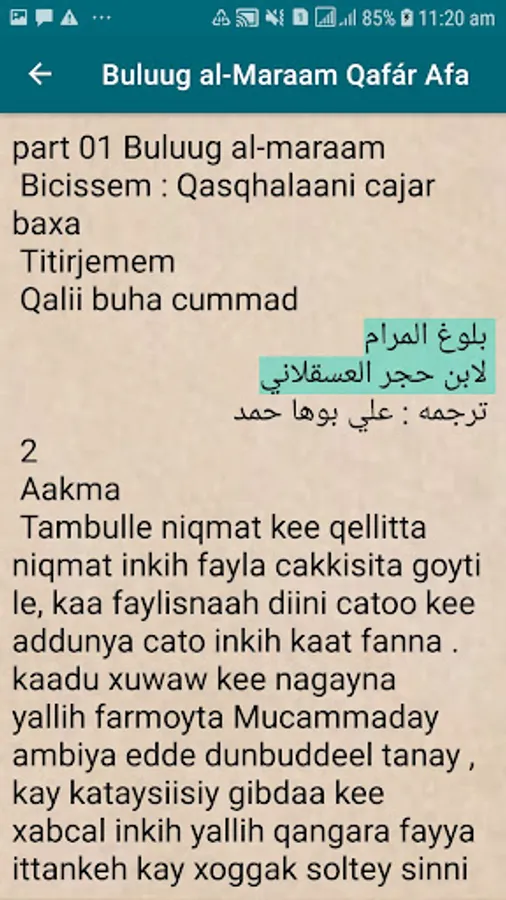 Tama kitab ibnu cajaral bicse kitab kinniih buluuqh al maraamal muggaaqise, tama kitaabih addal cukmit yabta cadiisitte elle gaabooseh yan yalli kaah racmatay.
