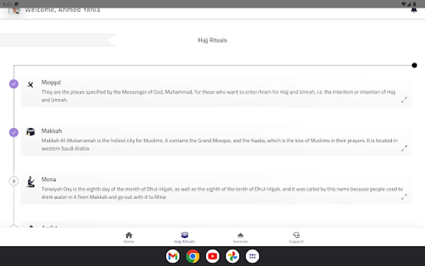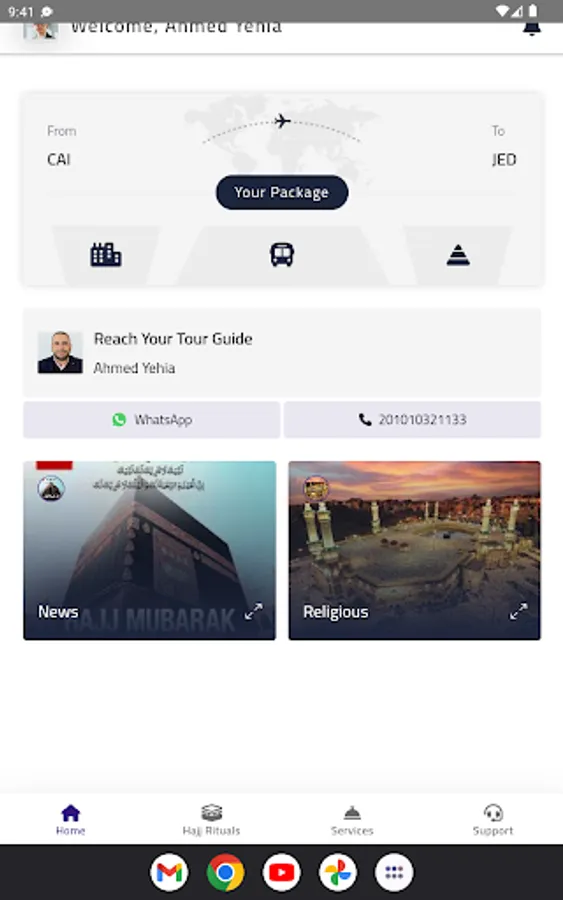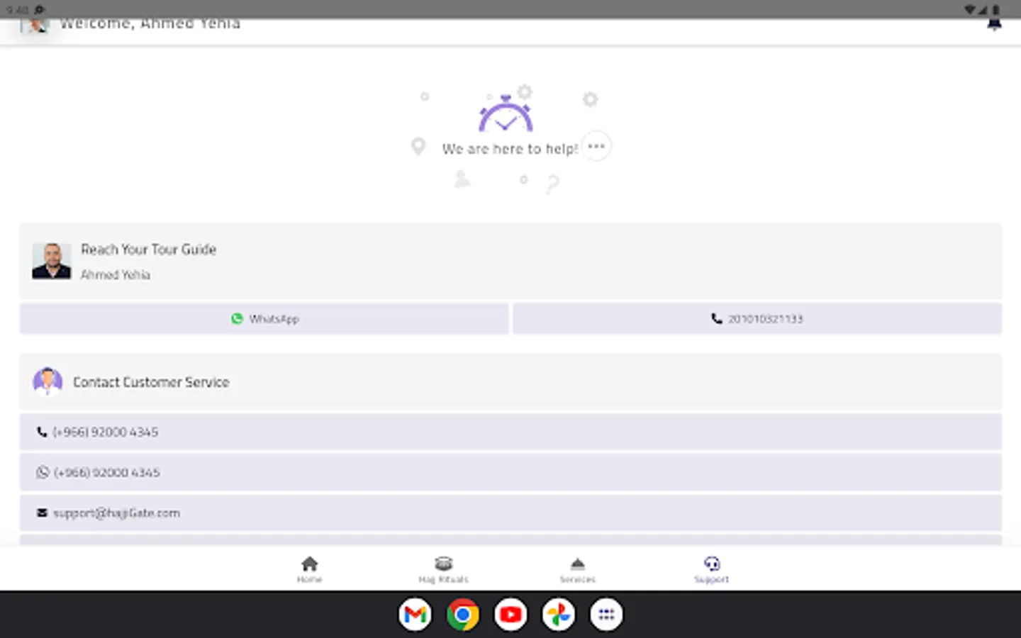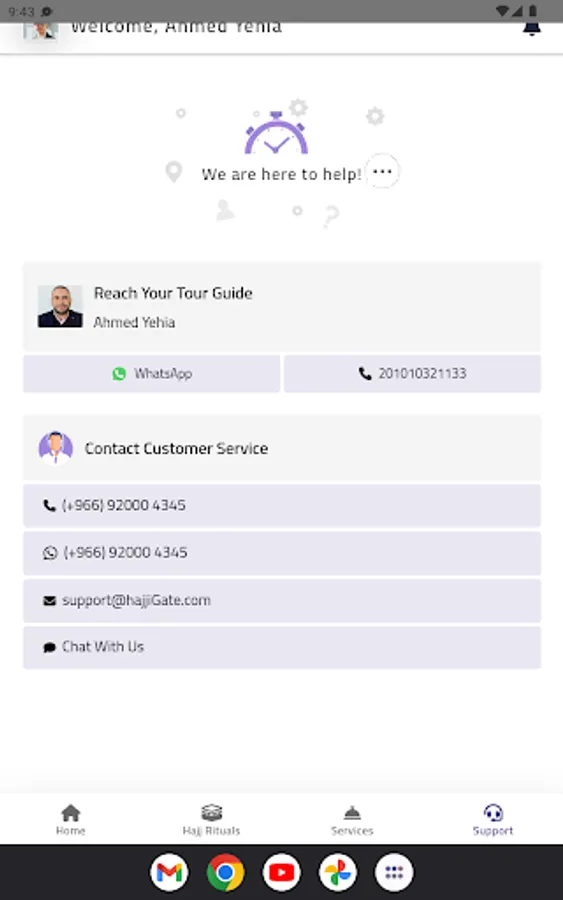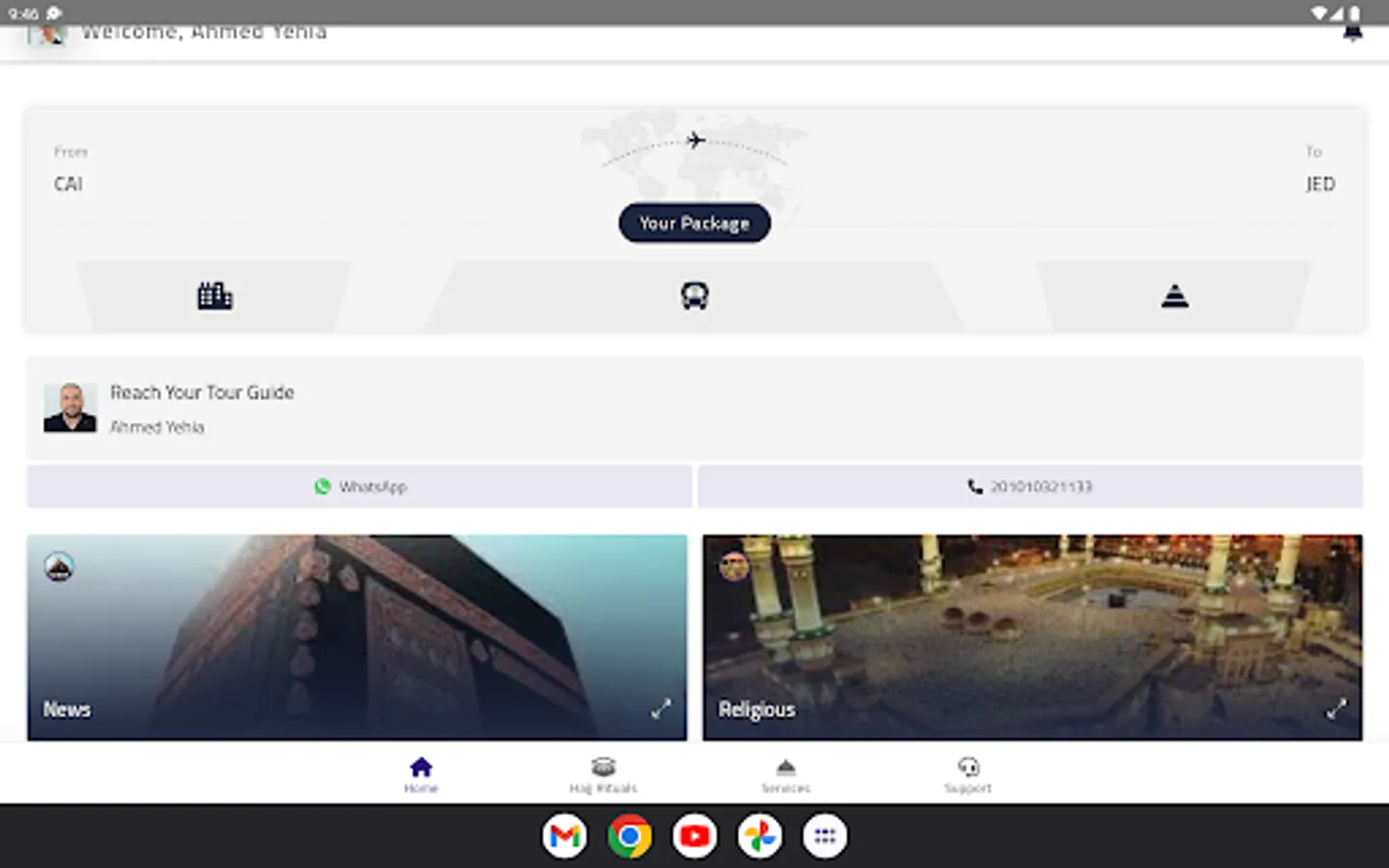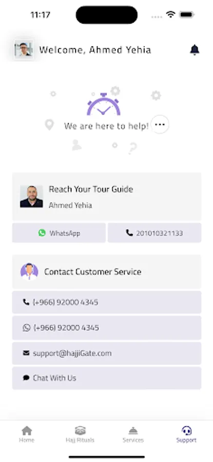 Welcome to the ultimate Hajj companion app! Our app is designed to make the Hajj journey smoother and more enjoyable for pilgrims. With our app, you can easily view your package details, book services, stay up-to-date with the latest Hajj news, and access important Hajj guides and steps. Our support team is also available via chat to assist you with any questions or concerns you may have.