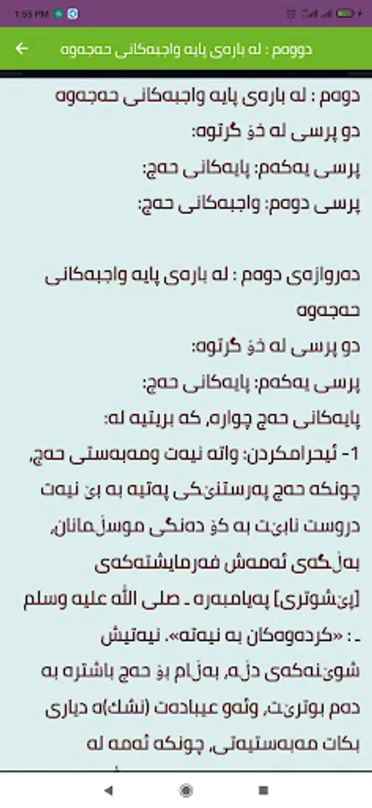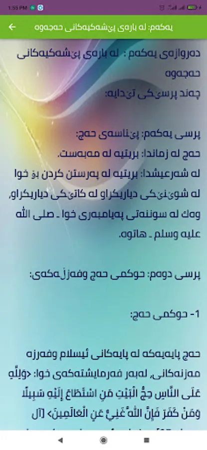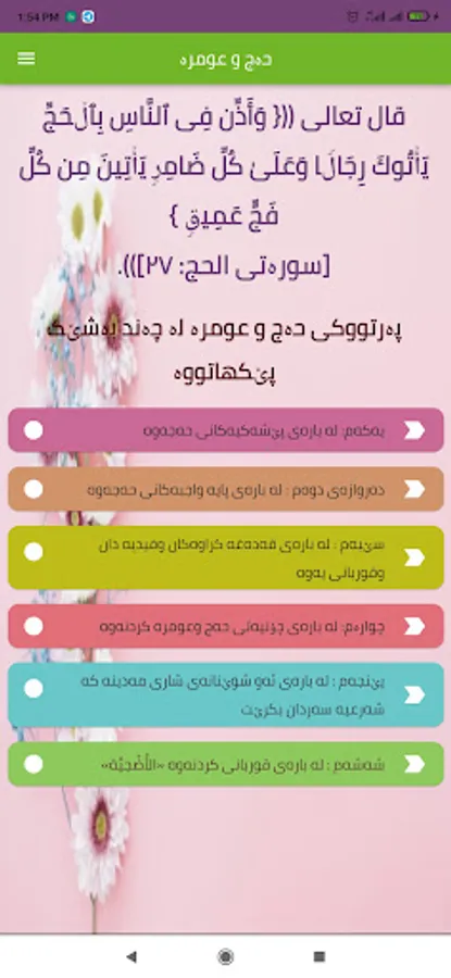 The application contains complete information about Hajj and Umrah in the Kurdish language, and the application consists of several portals