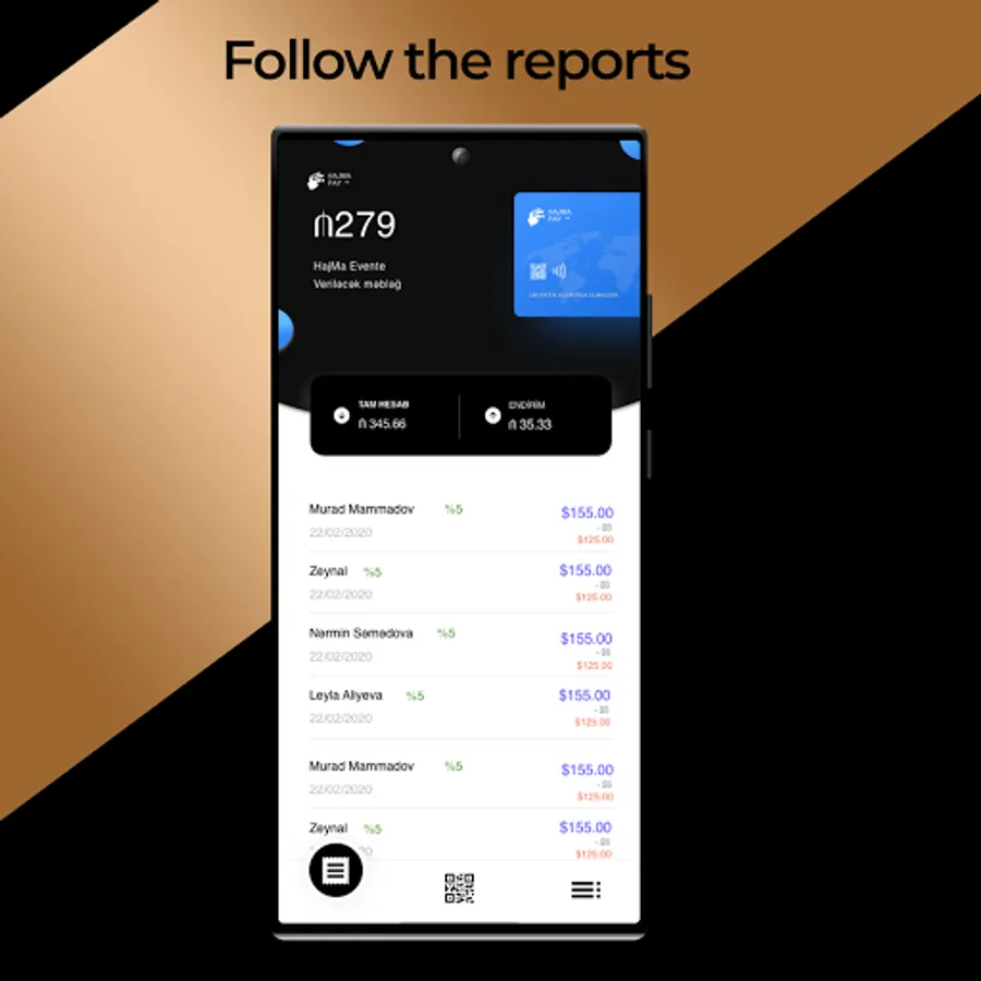 The HajMa Events Partner application is a mobile application that will be provided to partners with whom an official contract has been signed. The application will allow the administration of the place to use the QR code to provide a discount to HajMa Events users. After the administration logs into their account (the data of which will be provided in advance), they will have access to the home page with the ability to scan the QR code. After scanning, the administrator or employee of particular place enters the billing amount of the HajMa Events’s user. The partner application automatically calculates the amount that will be provided to the HajMa Events user for payment, taking into account the discount under the contract that was concluded between the institution and the HajMa Events service. The check will also be available to users of HajMa Events in the application, as well as to the administration of the establishment after the payment has been made. In the end, the full report in digital version will be available both for HajMa Events users and in the partner application provided to the administration of the place. In addition, all reports will be available for download in PDF format.
