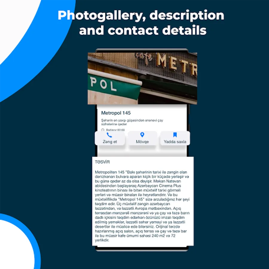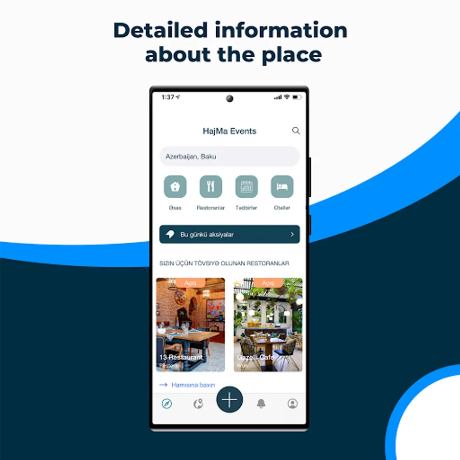 This project is suitable for anyone living in Baku or temporarily there. If you are thinking about where to go, where to stay, where to buy, what you need, HajMa Events is the right address. HajMa Events is also ideal for entrepreneurs, as they can see their competitors directly here and determine the approximate number of similar businesses.