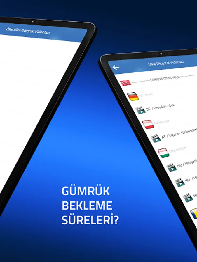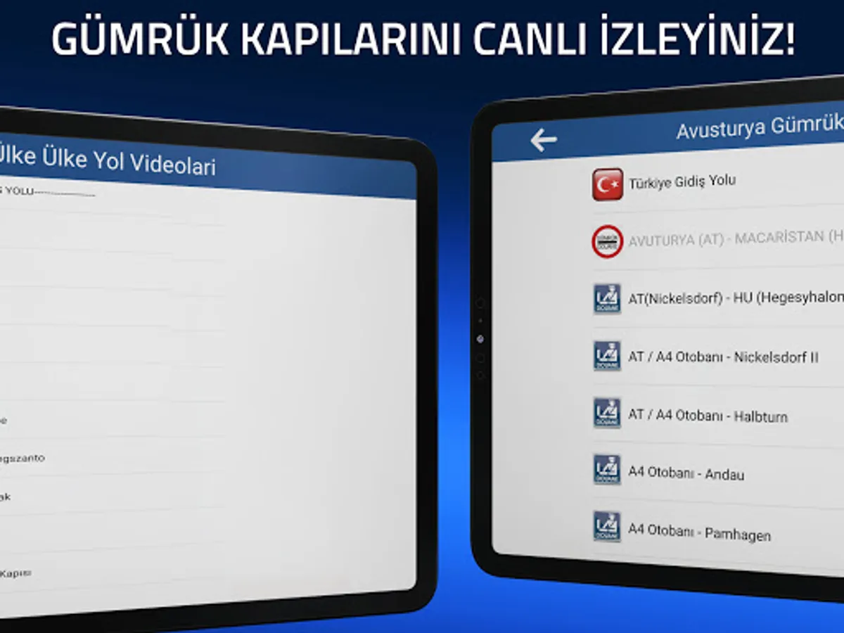 Avusturya,Almanya,Macaristan,Slovenya,Sırbistan,Hırvatistan,Makedonya,Bulgaristan,Yunanistan,Romanya,Slovakya,Çek Cumhuriyeti ve Türkiye dahil olmak üzere yol videoları ve alternatif gümrük kapılarına gidiş ve dönüş yol videolarını bulabilirsiniz.Ayrıca Sınır kapılarında bekleme süreleri her 2 saatte güncellenmektedir ve bildirimlerini açık tutan kullanıcılamarımıza Gümrük bekleme süreleri hakkında bilgiler gelmektedir.