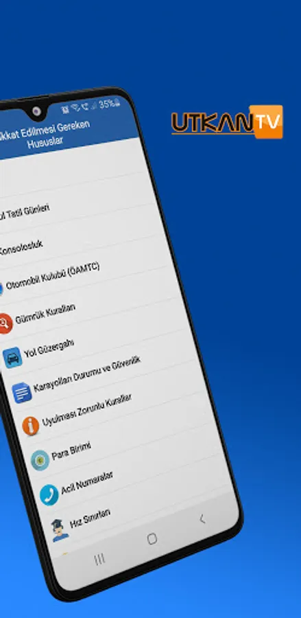 ''Utkan Tv Türkiye Yolu'' cep telefonu uygulamamız sizlere izin yolunda Türkiye’ye gidiş ve dönüş yolculuğunda 13 ülkede asistanlık yapmak için kurulmuştur.
