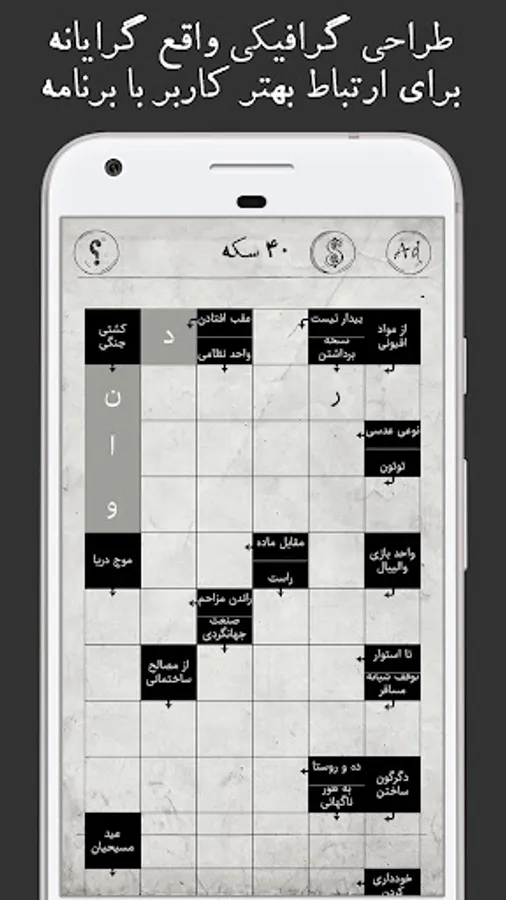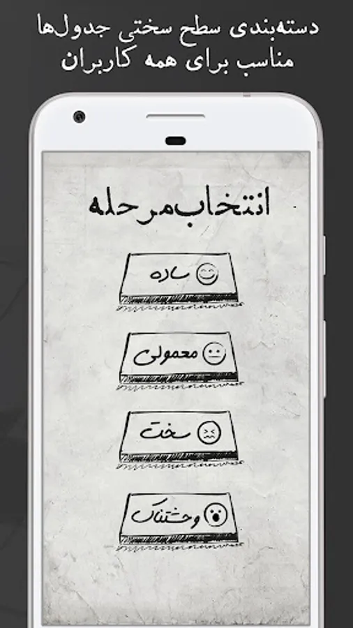 It's time for a paper table and set aside and go to solve the description table in the tabular text on your phone. Infinite Persian table game from that simple and cool table. You do not even need to type to solve the infinite table. Very easily and with a few clicks you can reach the desired word and put it in the description table in the text. The table game is easily solved.