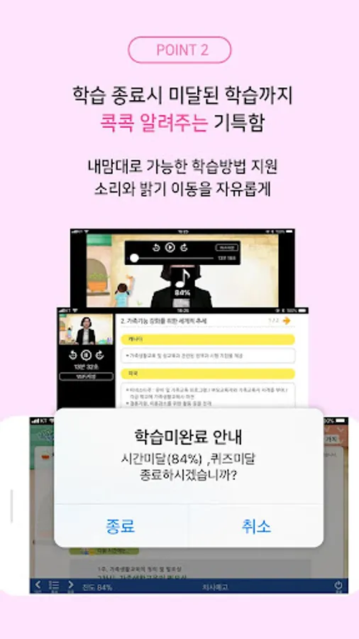 2.학습종료시 미달된 학습까지 콕콕 알려주는 기특함