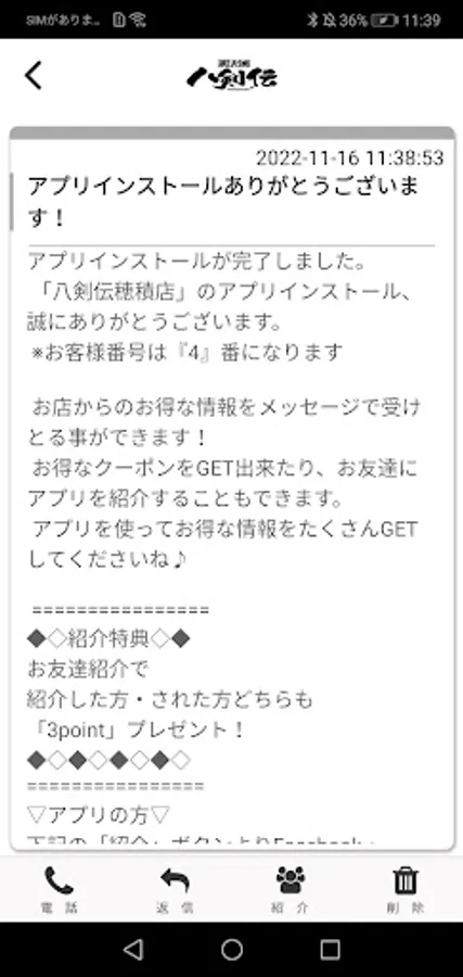 You can introduce the Hakkenden Hozumi store app to your friends through SNS.