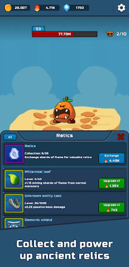 ★ Your hero mine monster legends, shards of flame, which you can always get by applying prestige. Exchange them for ancient relics and upgrade them. They significantly improve various characteristics