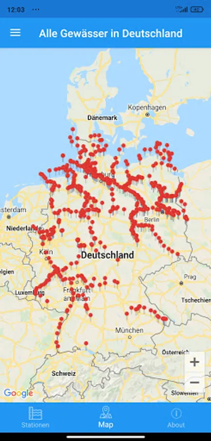 All water levels of all bodies of water in Germany