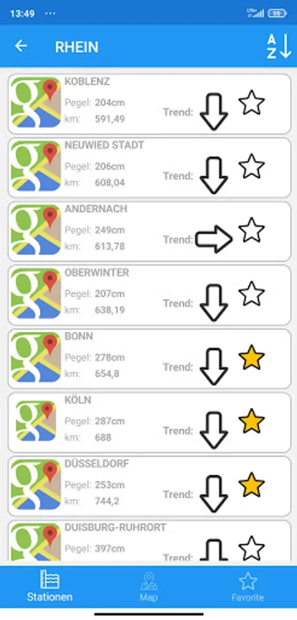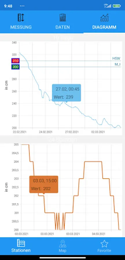 Uses the data from www.pegelonline.wsv.de