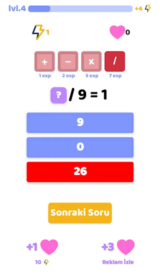 With 4 operations, play with more challenging questions in each level, improve your math.