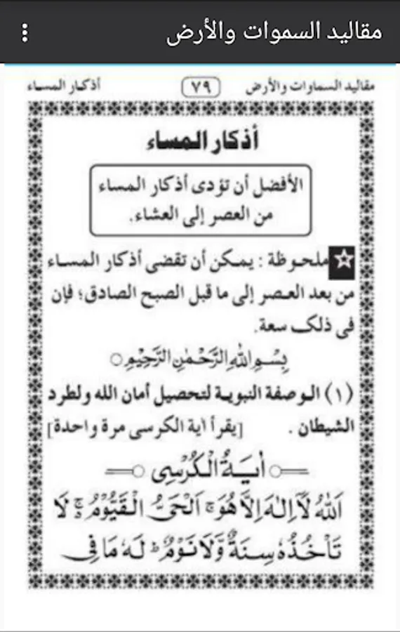 It contains statements, Sheikh Mohammad Omar Albalnbura of enacted easy supplications that read morning and evening; beautiful names; healing verses; verses prevention; verses tranquility; verses score; Almngjiat; prayers isti'aadhah; description Rahman super words.
