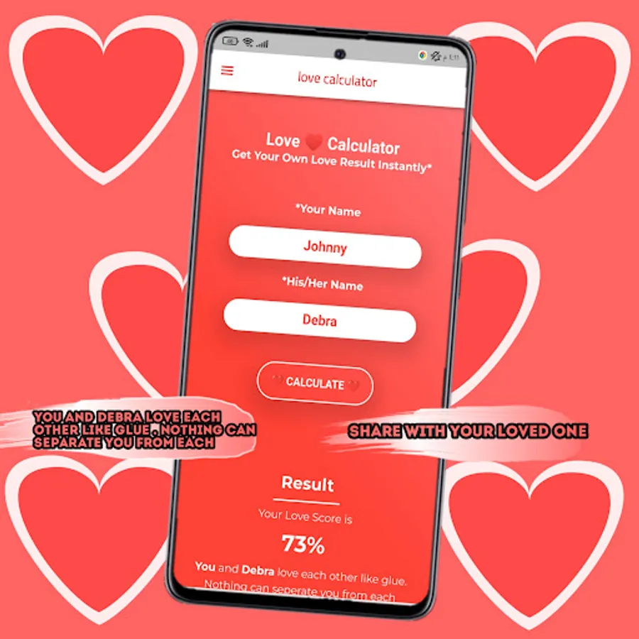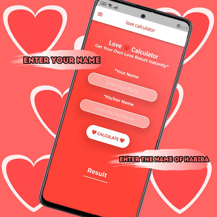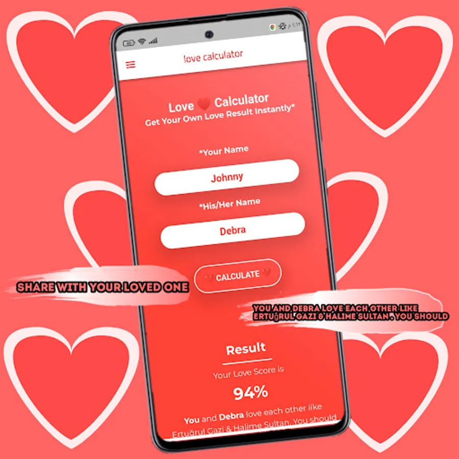 ثم لا بد من استخدام تطبيق Love Calculator لحساب توافق الحب استنادًا