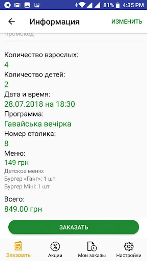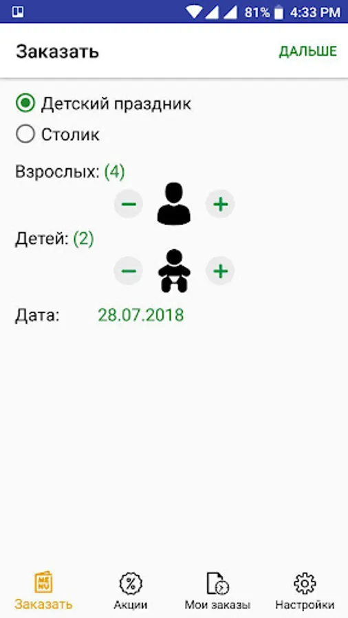 You yourself will choose the table that you like best and you can order a menu for both children and adults.
