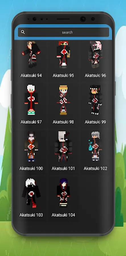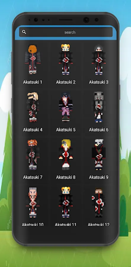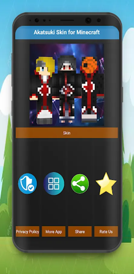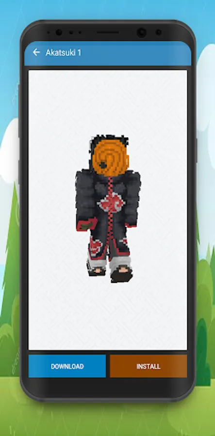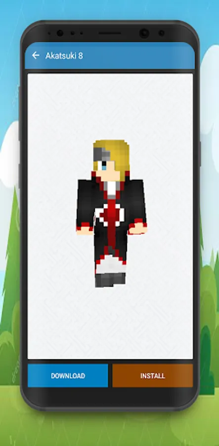 You will find beautiful HD Skins of akatsuki ninja and others. Akatsuki Skins For Minecraft PE is very easy to use. Just click the button to start playing with your favorite skin or by downloading it first.