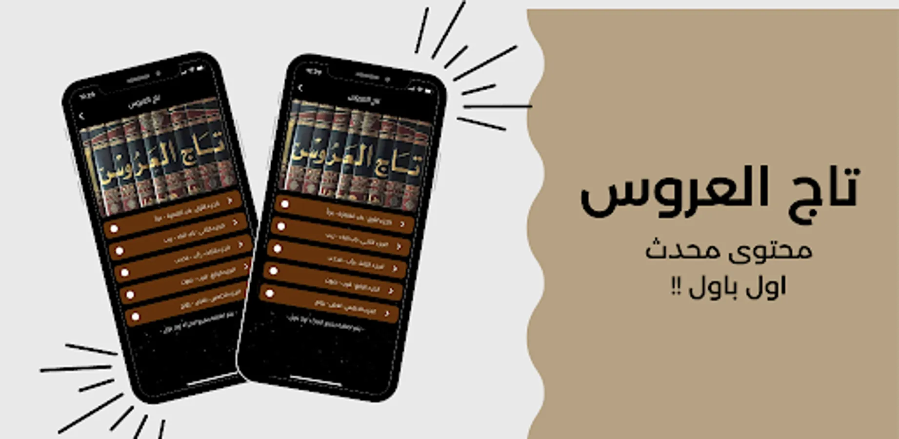 You can now read or hear Taj Al-Arous without the need to connect to the Internet. The Taj Al-Arous application is an invaluable treasure. Also, in our role in the Taj Al-Arous application, we add new content from time to time, meaning that it is content that speaks