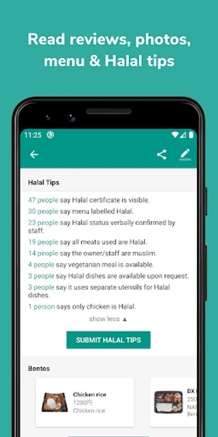 Now you don’t have to worry if you can’t check the ingredients in the menu. You can still get halal informations from our users restaurants review easily. Halal Navi also helps you to navigate to the nearest restaurants, mosques and prayer spaces. Simply search using the nearby feature and within seconds Halal Navi will list out all the halal restaurants and mosques around you.