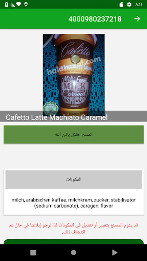 Where the application gives the Islamic ruling on food products in terms of the possibility of eating by Muslims or not easily and that