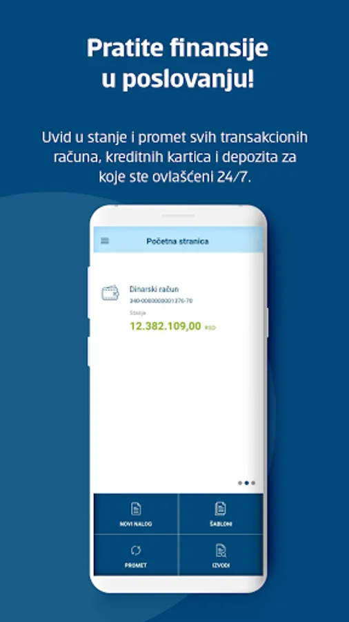 * Uvid u stanje i promet, kao i detaljni pregled svih transakcionih računa, kreditnih kartica i depozita,