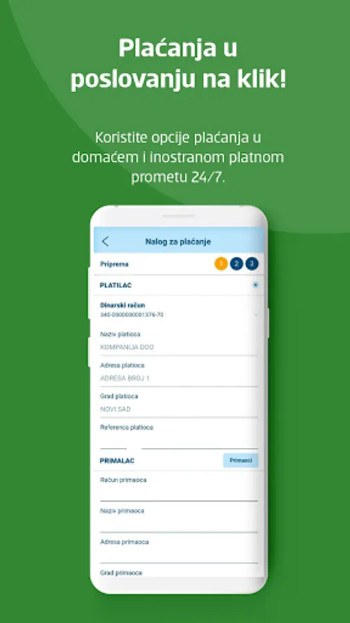 * Kreiranje naloga za plaćanje u domaćem i inostranom platnom prometu,