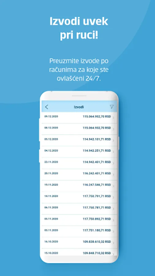 * Pregled i preuzimanje izvoda za transakcione račune,