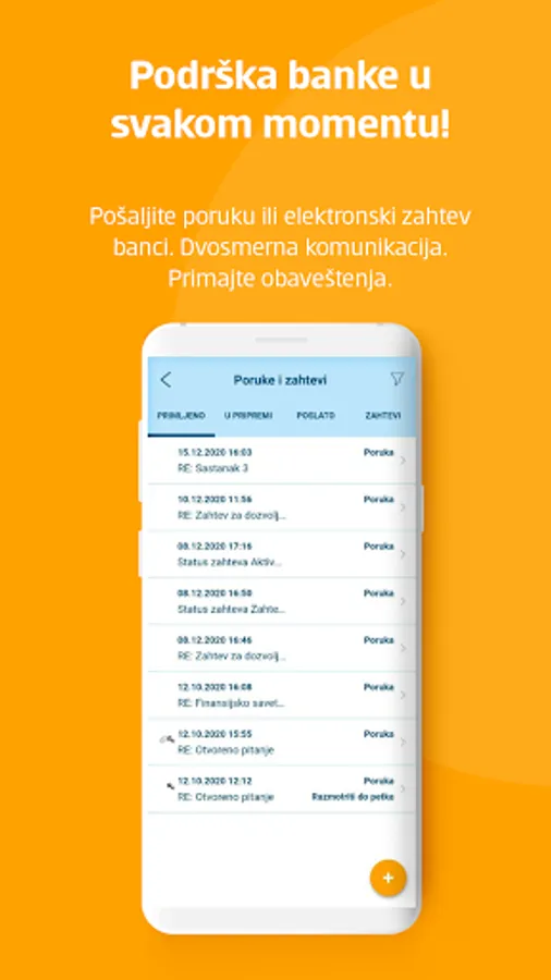 * Dvosmernu komunikaciju sa bankom i slanje elektronskih zahteva u vezi određenih usluga/proizvoda,