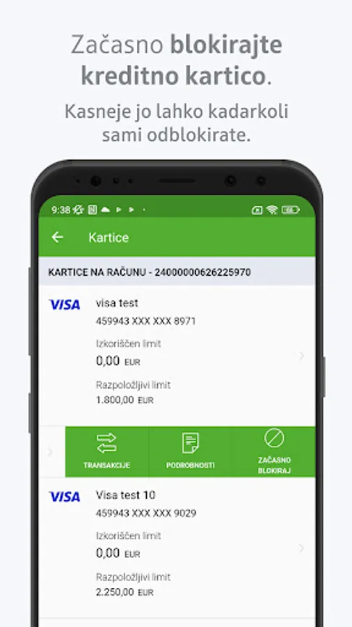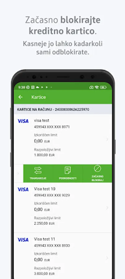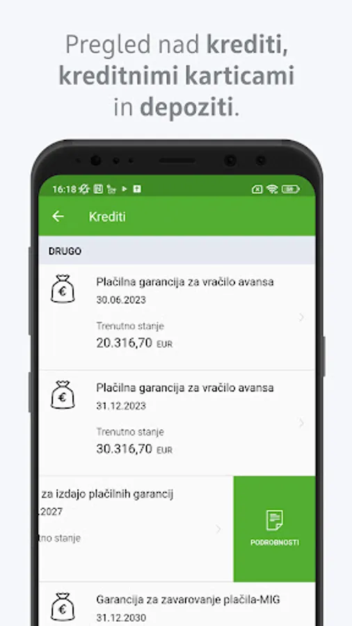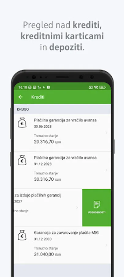 • pregled aktivnih depozitov, kreditov in poslovnih plačilnih kartic,