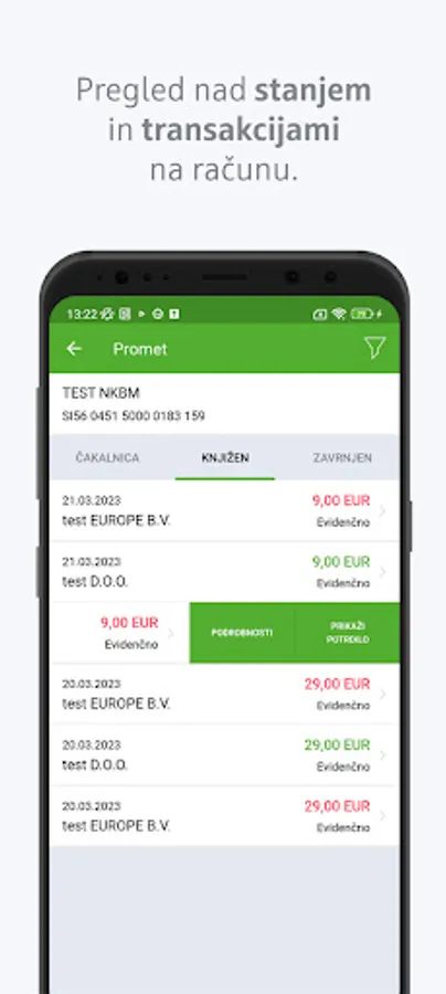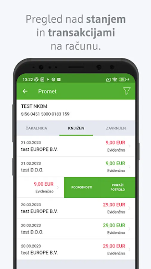 • pregled stanja in prometa na računih, ki jih je mogoče po želji preimenovati,