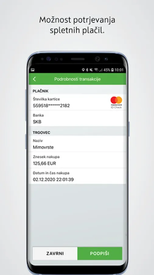 MOJ@SKB mobile banking is secure. The access to financial data is possible by entering a PIN number or with biometrics (fingerprint, face recognition). The data exchanged between the application and the banking system are located on a secure server. We use the most recent security mechanisms to transfer data, and transfers are encrypted according to the latest standards, which prevents unauthorized access to data and their abuse. An additional level of protection is provided by IBM Trusteer Mobile, which is integrated within the mobile bank itself.