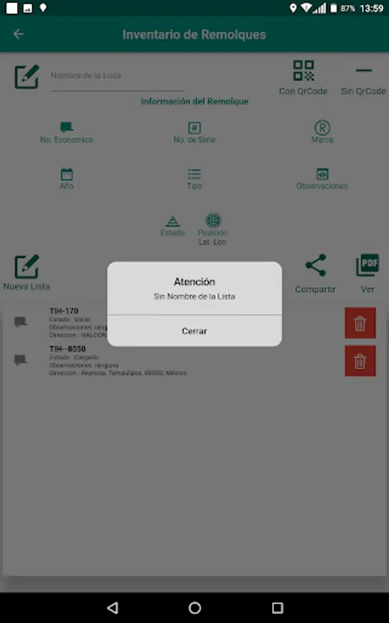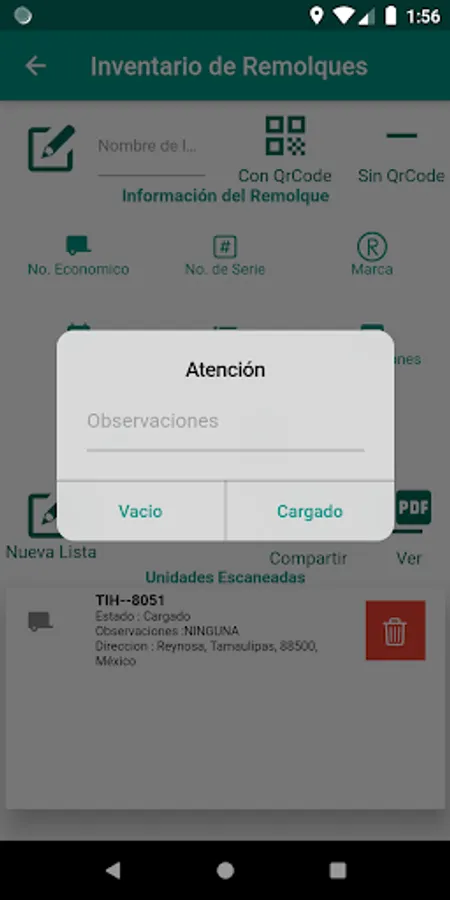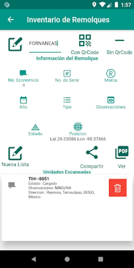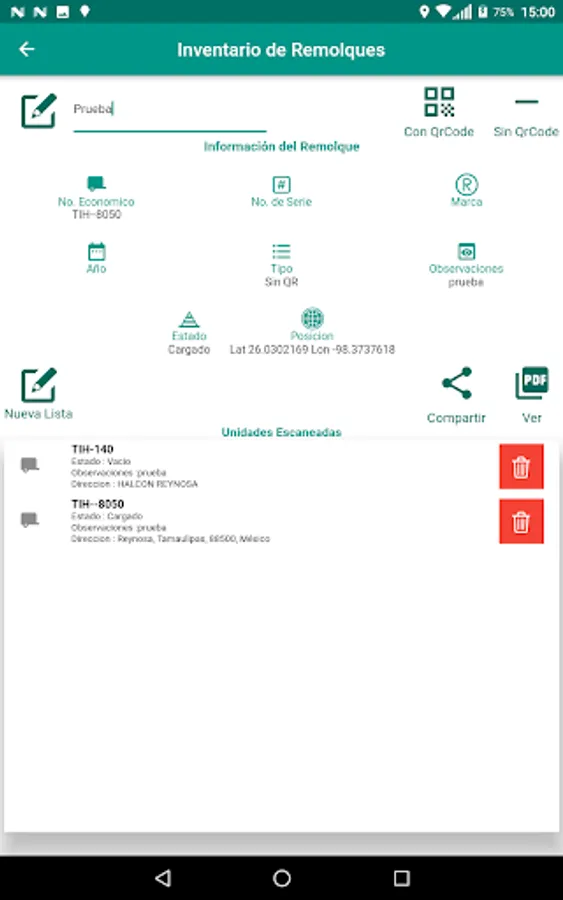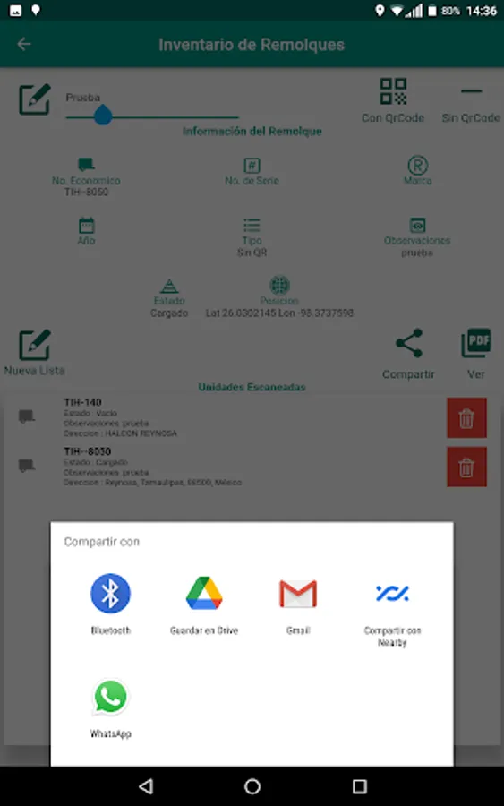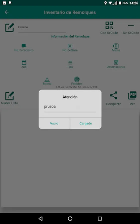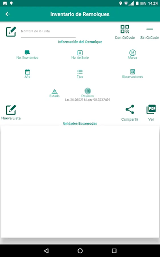 Application to lift the inventory of trailers, identify and send the location of the position to the tracking platform. Create report in PDF format and share through different applications such as Mail or Social Networks.