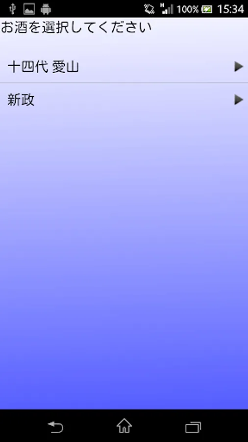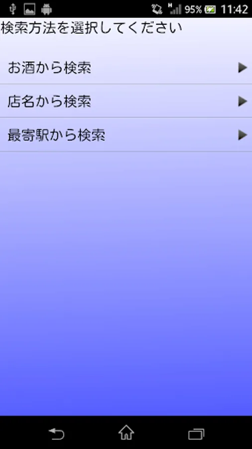 お酒から検索:お酒の種類を選択するダイアログで選択した種類で絞り込んだ状態でお酒から検索画面に遷移します。