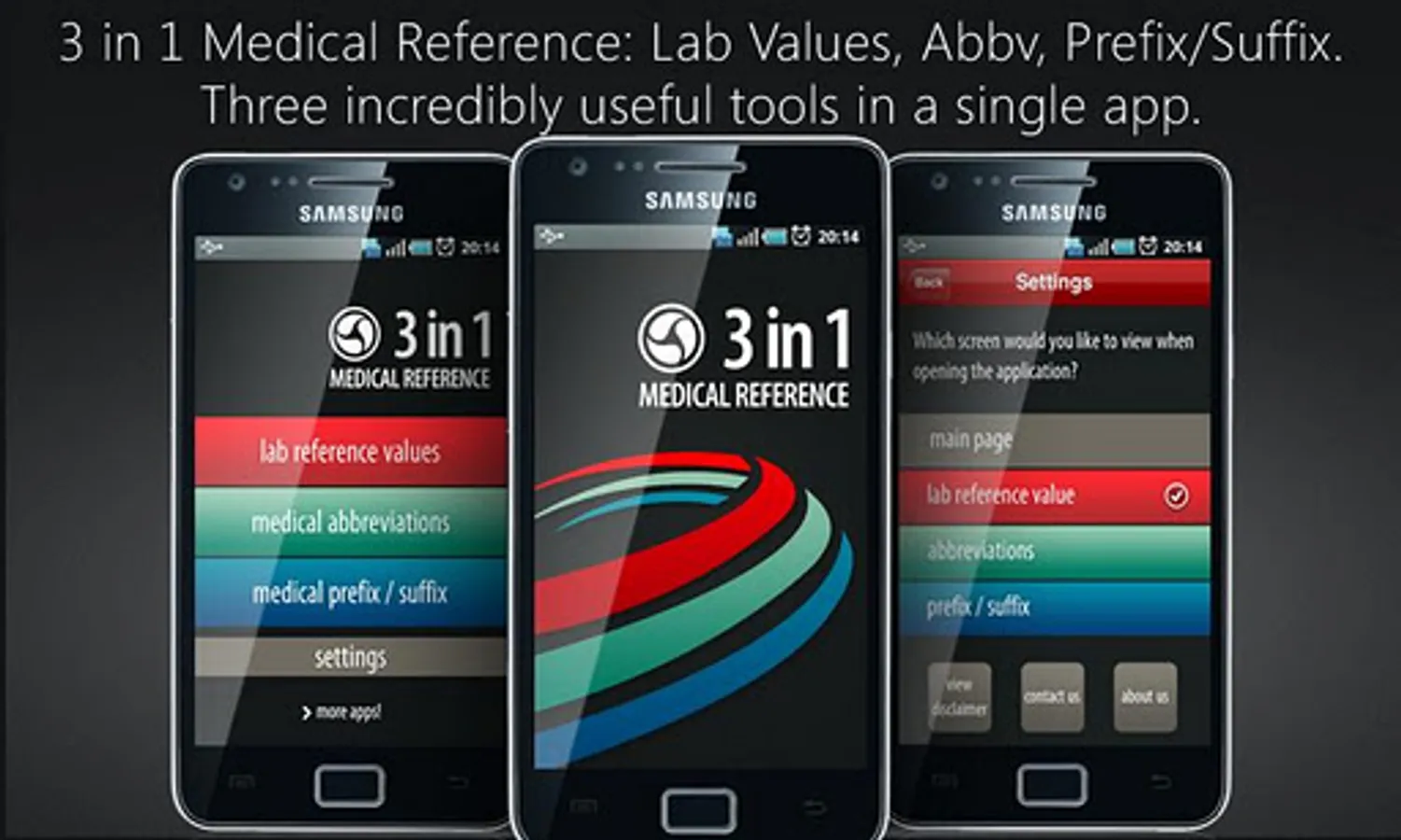 This is really three medical apps in one. Lab Reference Values, Medical Abbreviations, and Medical Prefix and Suffix, are all inside this amazingly helpful application.