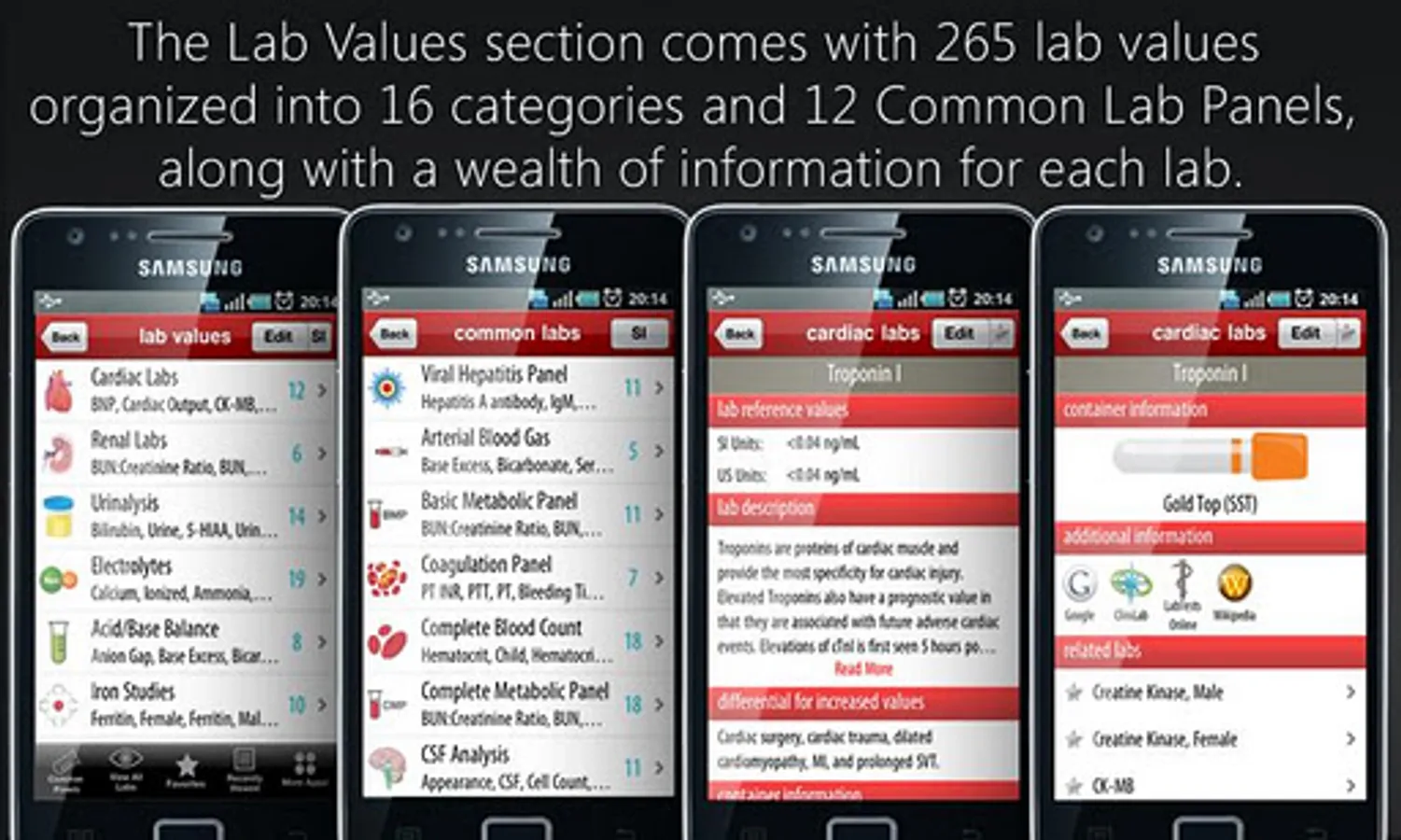* 265 Lab Reference Values in 16 different categories
