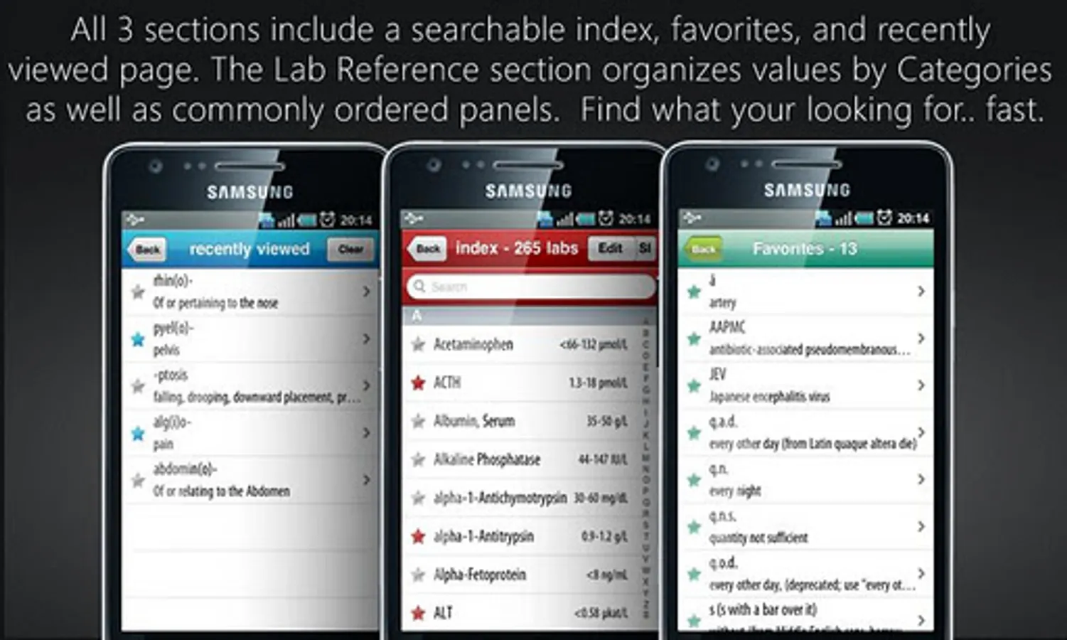** 3 in 1: Lab Values, Abbv, Prefix/Suffix is the premium resource for all healthcare professionals and students. Inside this one app you’ll find Lab Reference Values, Medical Abbreviations and Medical Prefix/Suffix, all at hand and ready to use, anytime, anywhere.