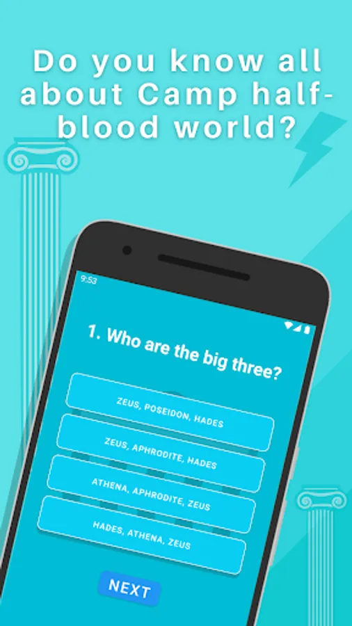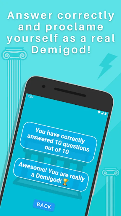 · Share your score with your friends and show who haves more knowledge about Rick Riordan world, the half blood camp, the greek mythology and proclame yourself a real Demigod!
