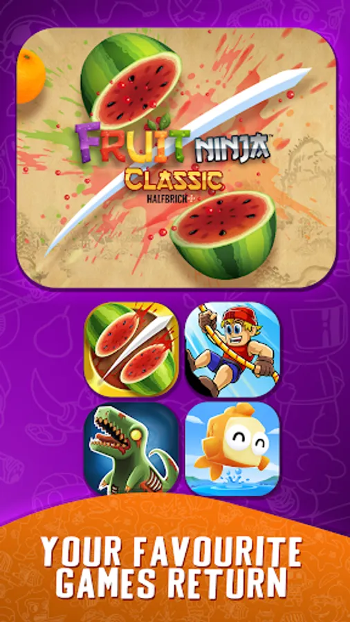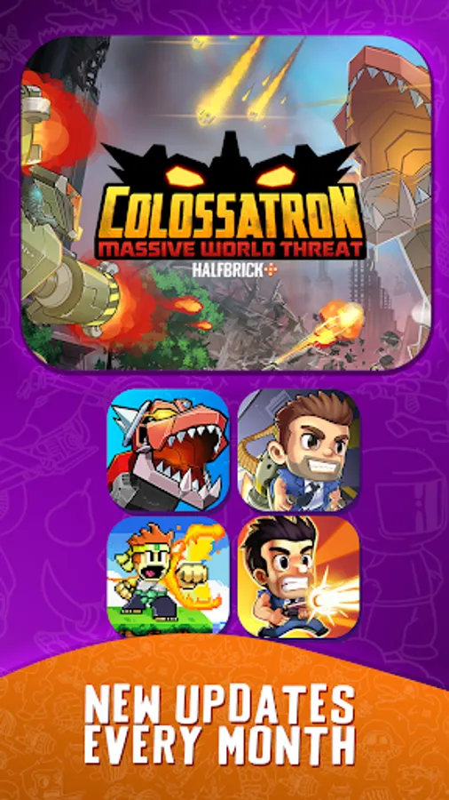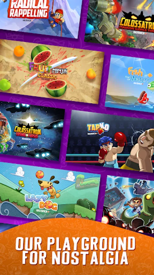 • Arcade greats like Fruit Ninja, iconic endless runners like Jetpack Joyride as well as smash hits like Dan the Man, Age of Zombies, Fish Out of Water, Colossatron – and more! You can discover them all on Halfbrick+